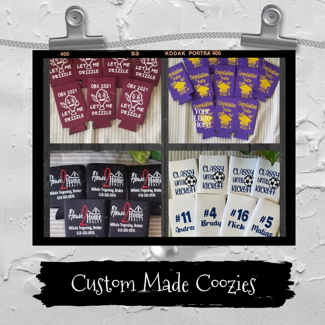 Custom made TALL sized coozies for Truly and Claws. Perfect for your wedding favors, business logo's, family reunions and well, just because, they are fun to design and have! Printing price is for one sided printed or front and back