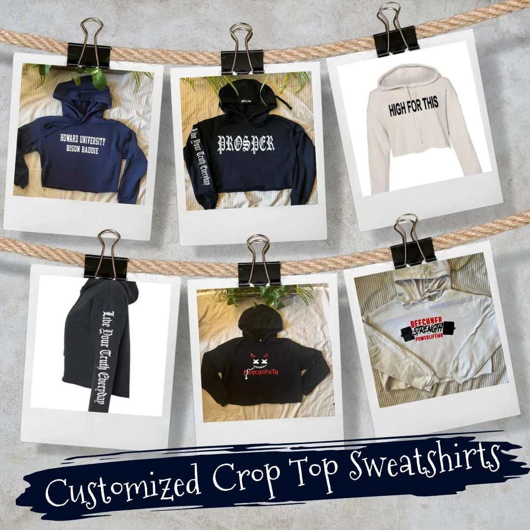 Customize the super soft and comfy Bella + Canvas Cropped Fleece hoodie with your logo. I have black ones in stock by other colors are available on request. Send me your logo or what you'd like o the sweatshirt and I can work up a sample design for you. Fonts I have available are in the picture area.