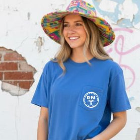 Super cute, soft and comfy comfort color pocket shirts with an RN nurse logo on them. The butter and Chambray shirts are lighter, and some people like the logo to stand out more, so they prefer a darker logo color. The white shirt comes with navy print, unless you want a different color.