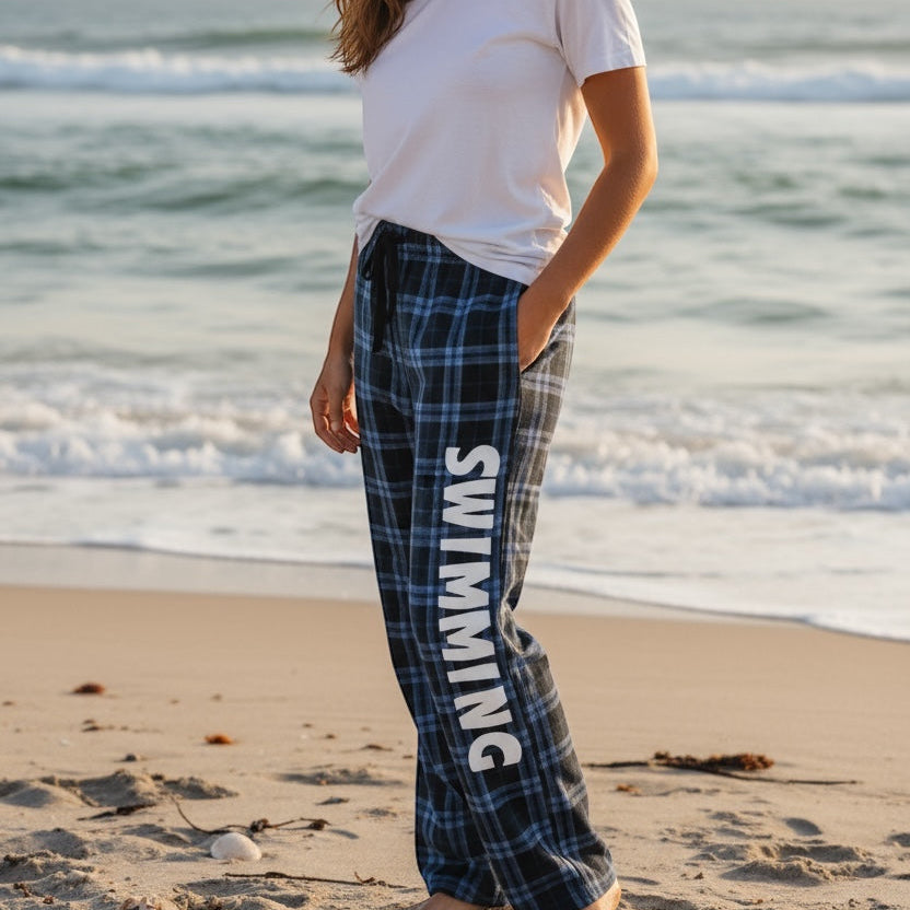 Dive into comfort with these playful personalized swimming flannel pants! Perfect for swimmers who want to show off their passion on land, these cozy pants feature custom personalization that celebrates your love of the pool. Soft, warm flannel keeps you comfortable whether you're relaxing at home or heading to swim team events. An ideal gift for competitive swimmers, coaches, or anyone obsessed with aquatic life. Make a splash in style!