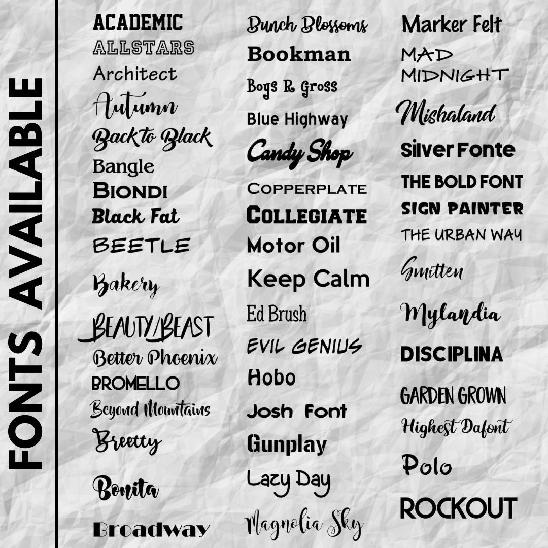 4. Font (Style of lettering you'd like) options in picture area