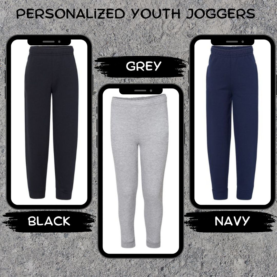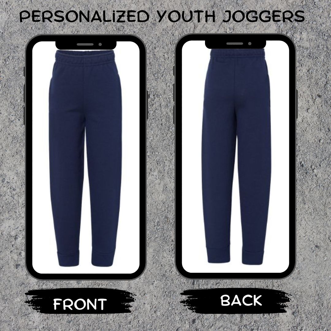 Custom made YOUTH jogger sweatpants, personalize them any way you'd like. These unisex Jerzees jogger sweatpants are cozy, warm, snugly and super soft. You will not want to change out of them. Express yourself with a personalize pair of comfortable joggers.